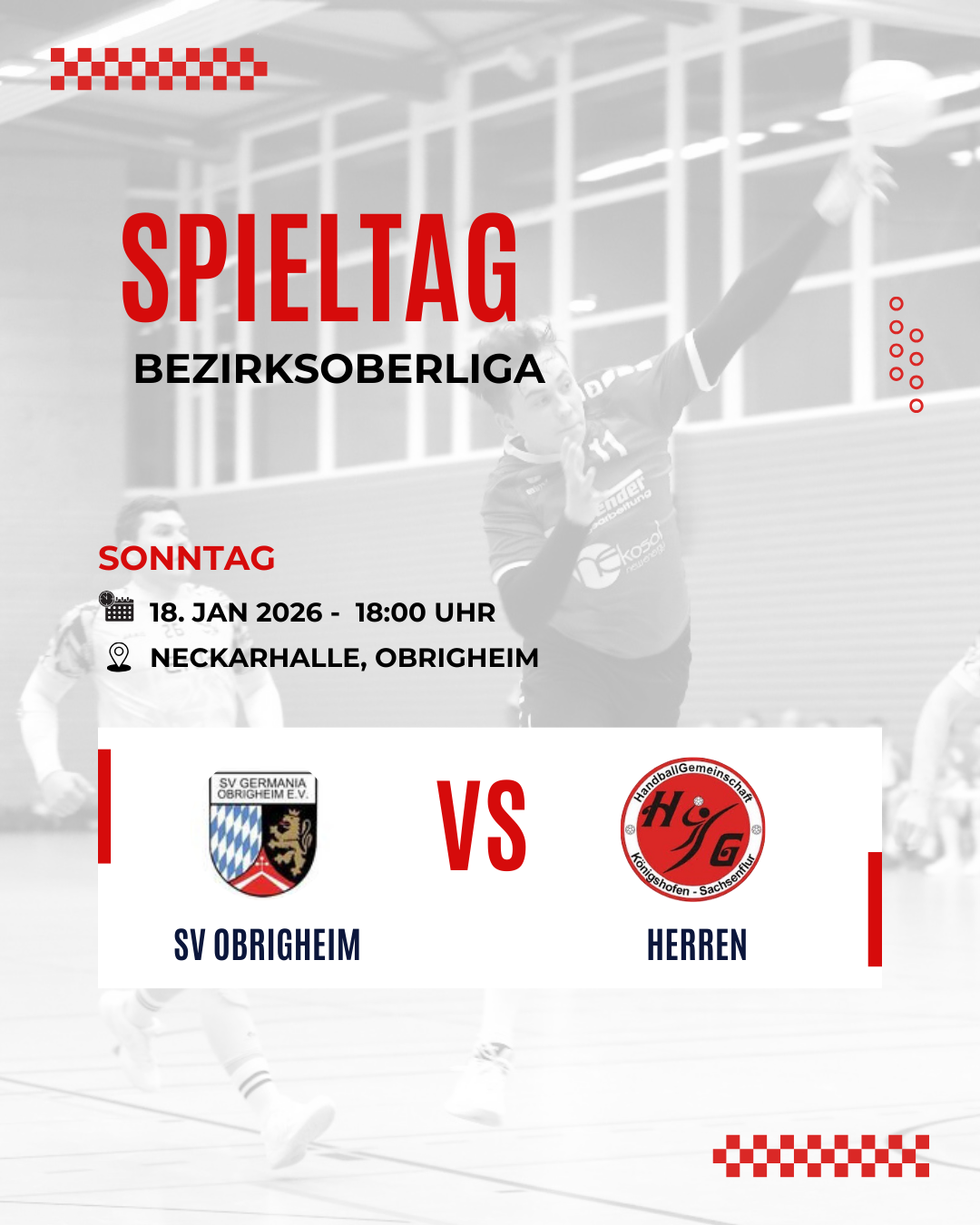 Zum Rückrundenauftakt der Bezirksoberliga Gruppe 2 trifft die HG Königshofen/Sachsenflur am Sonntag, den 18. Januar, auf keinen Geringeren als den aktuellen Tabellenführer SV Germania Obrigheim. Anwurf in der Neckarhalle ist um 18:00 Uhr. Beide Teams kennen sich aus der Hinrunde bestens – damals gelang den Taubertälern ein beeindruckender 32:24-Heimsieg, der im weiteren Saisonverlauf jedoch nicht wie erhofft beflügelte. Nach einem schwierigen Herbst und dem Rücktritt von Trainer David Fischer stabilisierten sich die Taubertäler zum Jahresende etwas. Die jüngste Partie gegen die SG Heuchelberg zeigte sowohl Licht als auch Schatten: Einer sehr starken ersten Halbzeit folgte eine schwierige Phase, an deren Ende ein hart erkämpftes 20:20-Unentschieden stand. Obrigheim hingegen geht als souveräner Tabellenführer in die Rückrunde (14:4 Punkte) und will sich für die Hinspielniederlage revanchieren. Für die HG (Platz 9 mit 5:13 Punkten) ist das Duell eine echte Standortbestimmung. Trainer Heiko Maag hofft, dass die angeschlagenen Spieler wieder einsatzbereit sind und sieht seine Mannschaft gut vorbereitet: „Wir wollen genau da weitermachen, wo wir vor der Pause aufgehört haben – mit einer stabilen Abwehr, einfachen Lösungen im Angriff und mehr Tempo im Spiel.“ Personelle Veränderungen zur Rückrunde gibt es bei den Taubertälern nicht. Entscheidend wird sein, ob die Mannschaft ihre gute Defensivarbeit aus dem Heuchelberg-Spiel erneut abrufen kann – und ob es gelingt, das Tempospiel über die volle Distanz aufrechtzuerhalten. Ein mutiger Auftritt beim Tabellenführer könnte ein wichtiges Signal für den Start in die Rückrunde setzen.